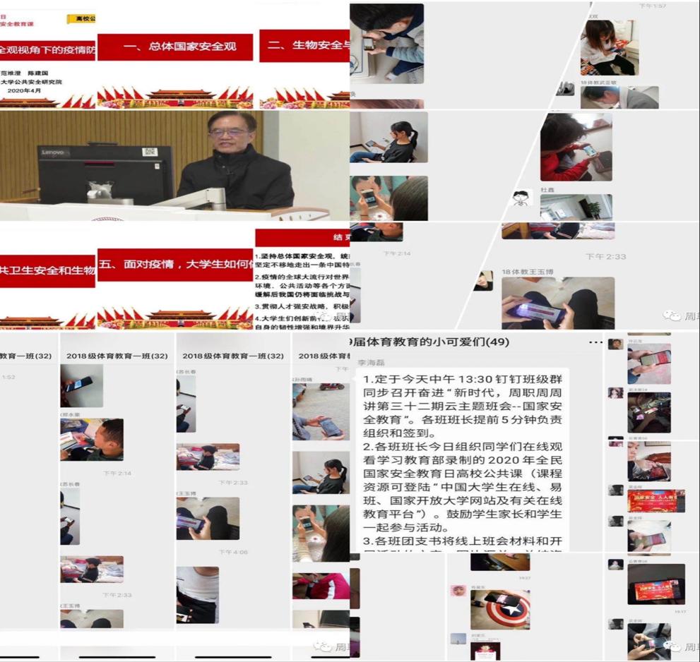 国家安全,人人有责。今年的415日是第五个全民国家安全教育日。为提高广大青年学生国家安全法治意识,增强学生的防范和抵御安全风险的意识,我院结合当前疫情发展形势的实际,提前谋划,周密部署,通过云平台开展了国家安全日云主题班会、云主题公共课、云主题知识竞答等系列主题教育活动。